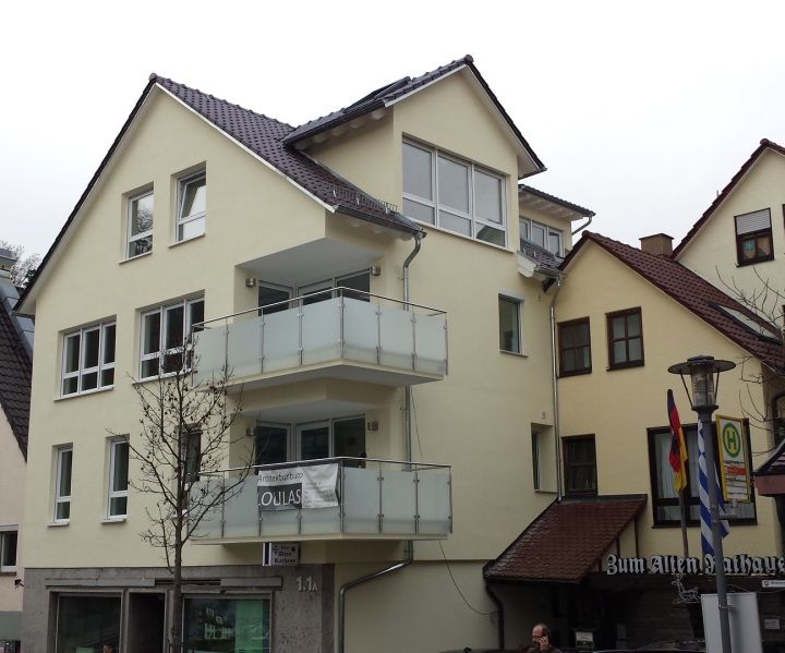 Die Aufgabe bestand hierbei, das bestehende Fachwerkhaus aufzustocken und von Grund auf zu sanieren. Die Problematik war nicht nur der statische Aspekt, sondern auch die Umsetzungen dessen. Vor allem der Bauablauf gestaltete sich als besonders herausfordernd, denn das Ziel war es das bestehende Treppenhaus weiter zu nutzen und die angebauten Wohn- und Geschäftsräume nicht zu beeinträchtigen.